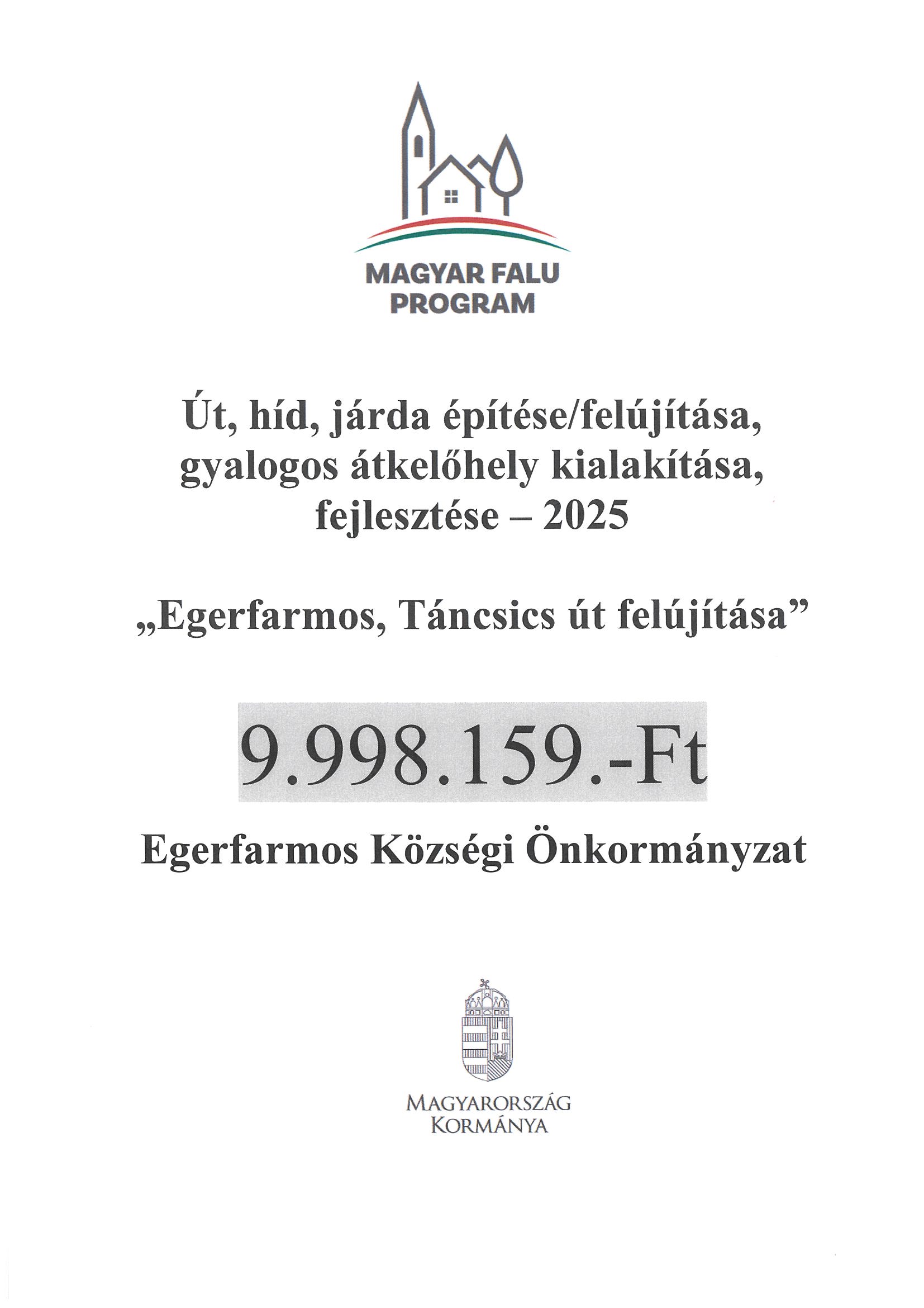 Projekt címe: „Egerfarmos, Táncsics út felújítása”